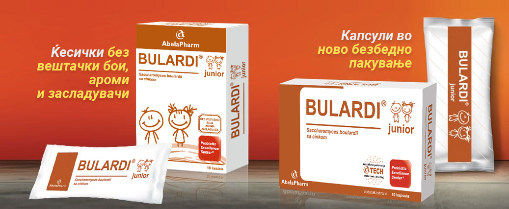 - Bulardi® junior го зајакнува цревниот имунитет и го стимулира лачењето на антитела кои се борат против причината за дијареа